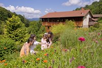 Et puis il y a aussi la fabrication du papier avec des fleurs naturelles cueillies dans les jardins à côté du Moulin Richard de Bas. Les bouquetières, qui réalisent ce travail minutieux à la main, nous impressionnent par leur patience et par leur dextérité.