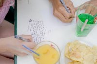 And now time to choose postcards and write to parents and friends, on a terrace bar where refreshments are served.